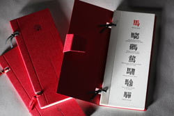 Coffret en tissu rouge de 12 marque-pages avec notice historique CFC001