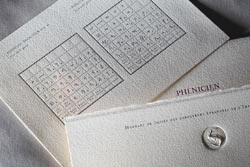Planches de casses des principales écritures du monde dont l'Imprimerie nationale détient les poinçons originaux. Les casses sont les boîtes plates et compartimentées dans lesquelles les typographes prélèvent un à un les caractères du texte à composer.