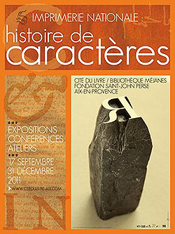 Au sein de la bibliothèque Méjanes, cette exposition, très visuelle, met en avant une cinquantaine de livres anciens imprimés par l’Imprimerie Nationale (XVIe-XIXe siècles), du matériel typographique ayant permis leur réalisation et des techniques (poinçons, matrices, casses de caractères…) : Grecs du Roi, Garamond, Romain du Roi ou Grandjean, Buis du Régent (caractères chinois en bois), hiéroglyphe, cunéiforme, tibétain, arabe, irlandais … autant de caractères aujourd'hui classés "Monuments historiques" utilisés depuis le XVe siècle.