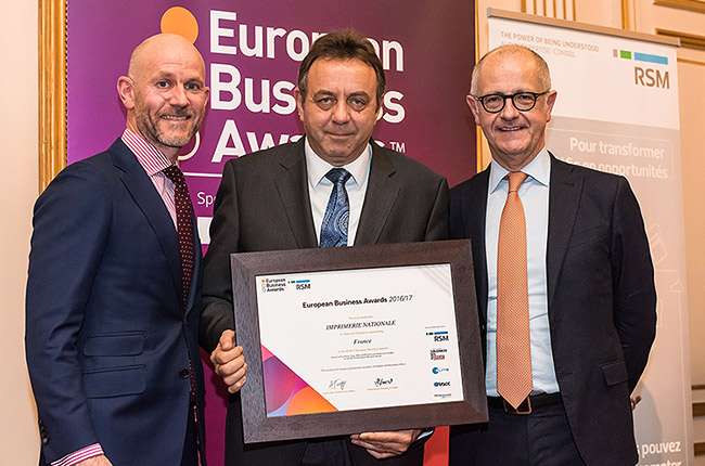 Le Groupe Imprimerie Nationale a été mis à l’honneur aux côtés des 32 autres champions nationaux français lors de la cérémonie des European Business Awards qui s’est tenue le 30 janvier 2017 à l’Ambassade de Grande-Bretagne.