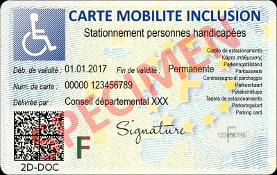 « Au-delà de l’objectif de simplification, la création de la carte mobilité inclusion est aussi l’occasion de conforter les personnes handicapées dans leurs droits. Il s’agit en effet d’une carte sécurisée et moderne, contrairement aux cartes qu’elle remplace, qui avaient un format un peu désuet, qui résistaient mal au temps et faisaient souvent l’objet de faux, spécialement la carte de stationnement. »Didier TRUTT, Pdg du Groupe Imprimerie Nationale déclare