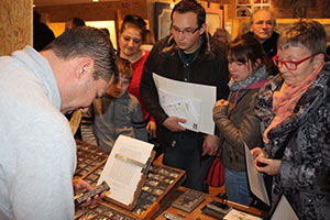 Les principaux savoir-faire de l’Atelier du livre de l’Imprimerie nationale y étaient représentés avec des démonstrations en gravure de poinçons typographiques, composition typographique, impression typographique (sur presse à épreuves), impression taille-douce.