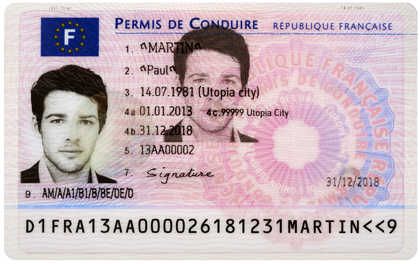 D’un format ID1 et en polycarbonate, le permis de conduire électronique français produit et personnalisé par l’Imprimerie Nationale répond aux exigences de la Directive Européenne ainsi qu’aux normes ISO liées aux cartes à puce.