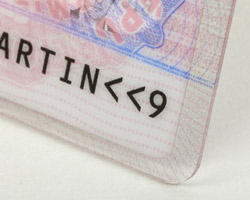 Le permis de conduire est une carte polycarbonate à bord transparent. Cette sécurité est déjà mis en œuvre pour des produits d’identité tels que le permis de séjour européen électronique. Les forces de contrôle plébiscitent cette sécurité de niveau 1 (visuelle), facilement reconnaissable mais extrêmement complexe à produire.